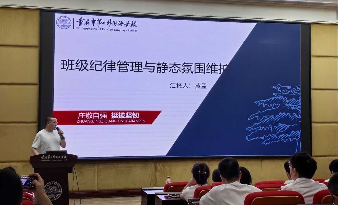 2025年9月22日星期一,重庆市第二外国语学校全校班主任培训会,在颂恩堂隆重举行。会议在生涯规划中心主任、学生发展中心副主任黄娟主任的主持下会议延续“净”“静”主题,进一步加强各年级之间的经验交流,为“净”“静”“竞”“劲”学年德育目标集思广益。会上,来自高2026级的两位班主任黄孟老师和李义斌老师毫无保留的分享自身带班的一些经验和技巧,从理论和实操层面都做出了很好的指导;最后程行主任对本周德育常规提要求,明确本周德育方向。 黄孟老师《班级纪律管理及静态氛围维护》的分享,从班级实际问题出发,一些特别的点做具体措施分享,严格做到言出必行,为学生树立积极的榜样;同时,以“亦师亦友”的相处模式拉近与学生的距离,让学生愿意听、听得进;再结合合适的奖励机制巩固班级管理的成果。 李义斌老师《于“静”土中育繁花》的分享,从“静文化”建设为德育起点,过程中从环境、心理和制度三个层为孩子们营造“静氛围”;结合了细化目标、阶段奖励让学生实现从他律到自律的转变;最后他强调到我们每位班主任都是一名静心的守护者,静待繁花盛开。 最后,学生发展中心程行主任针对校园安全、仪容仪表等问题给出具体措施,对德育常规做出要求,旨在营造安全、美丽的校园,并希望各位班主任严格落实常规工作,守护一方“静”土。